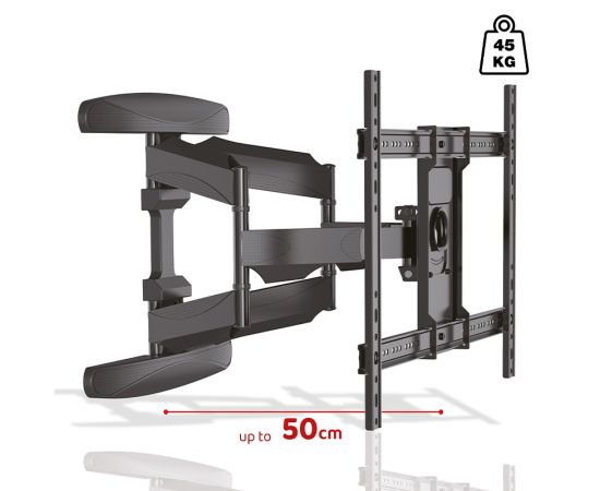 Η πολλαπλά ρυθμιζόμενη βάση ELB-4080 JollyLine ΒΑΣΗ TOIXOY TV 40-80 Motion 50kg, με παντογραφική κίνηση βραχιόνων, προορίζεται για στερέωση τηλεόρασης ή οθόνης 40 έως 80 ιντσών και βάρους έως 50 κιλά, σε κάθετη επιφάνεια εσωτερικού χώρου. Ο λειτουργικός σχεδιασμός, βοηθά και στην διατήρηση της αισθητικής του σημείου, προσφέροντας απόκρυψη της όδευσης του καλωδίου της TV, στο τμήμα πίσω από την βάση. Με μόνο από 5,3 εκατοστά απόσταση από τον τοίχο, είναι ιδανική για χώρους όπως κουζίνες και υπνοδωμάτια. Το είδος προορίζεται για τοποθέτηση και επέμβαση, μόνο απο εξειδικευμένο τεχνικό προσωπικό. Η επιφάνεια στήριξης πρέπει να πληρεί τις προϋποθέσεις στήριξης βάσει προδιαγραφών και χαρακτηριστικών της βάσης και των συσκευών η οποία αυτή στηρίζει. Το είδος προορίζεται για εγκατάσταση και χρήση μόνο σε εσωτερικό χώρο.