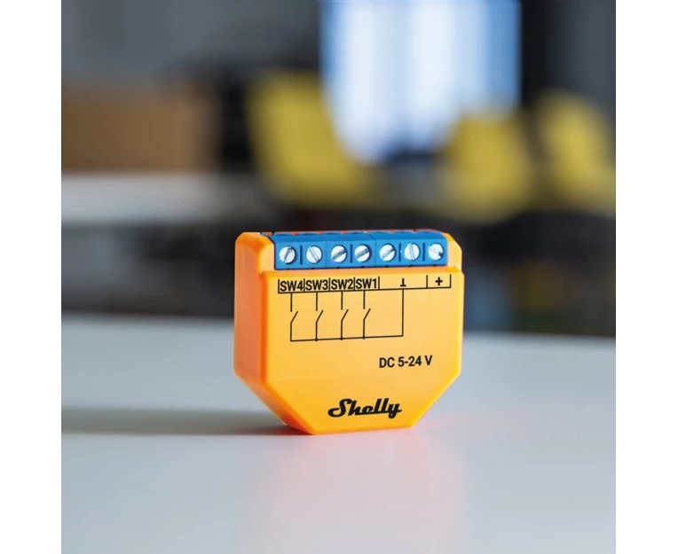 Shelly Plus i4DC is a smart Wi-Fi switch input that allows you to manually activate or deactivate any created scene, run synchronized actions, or execute complex trigger scenarios. You can use Shelly Plus i4DC to control other connected Shelly switches, sensors, or HTTP and MQTT-controlled devices. Small enough to fit behind every wall switch, Shelly Plus i4DC can show the status and control the action of four inputs.